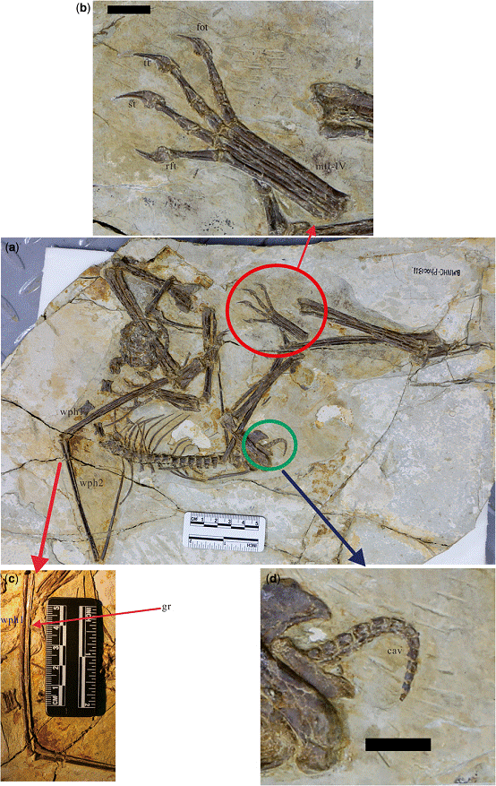 黄昏翼龙的脚部及尾部构造:对握的脚拇指及弯曲的尾部
