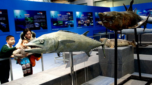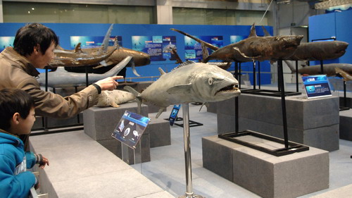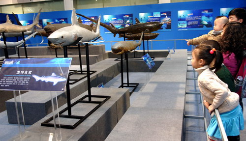 《鲨鱼的故事》这个展览,不仅展示了鲨鱼演化的历史,还有鲨鱼适应海洋生活的独到之处,以及鲨鱼这个大家族中那些颇有特点的成员。此外,这个展览中,还展示了鲨鱼软骨为什么不能治疗癌症、人类不是鲨鱼的食物、鲨鱼泳衣的原理等等内容,希望通过这个展览,大家能够更多的了解鲨鱼,能够更客观的去认识和对待鲨鱼,能够从我做起,尽自己的一份责任和力量,保护鲨鱼,保护海洋,保护所有的海洋动物,让这些在海洋中游弋近四亿年的动物,还能够继续自由的生活在海洋中。展览将从2013年2月7日持续到2013年4月27日。(文/杨静 摄影/李凡)